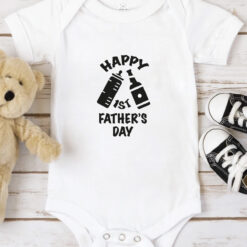 Happy 1ST Father’s Day Baskılı Bebek Beyaz Body Zıbın